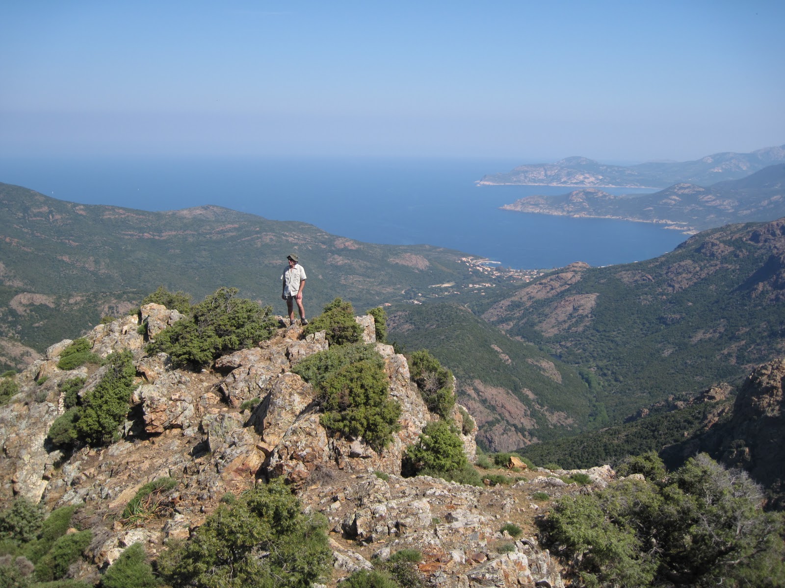 Next morning the route was from Girolata to Curzu - as we later found out, in many books, the official route misses a lot of this day out in a shorter and far easier variant. This was quite a tough and long day in the heat - however, it was a fantastic walk which I really enjoyed and I would recommend that you do it if you feel up to it. Keep your wits about you - some of the path is overgrown and route markers sometimes difficult to locate. It is an 18km walk with a stiff 1300m ascent and 1200m descent. The morning starts with a pretty relentless climb from sea level to 900m but what a fantastic walk - with constant views back to the Gulfe de Girolata, over to the next headland at Cap Senino and across to the Gulfe de Porto. There are also stunning view to the east of many Corsican mountains.
